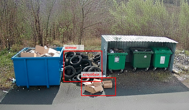 Система научилась автоматически выявлять новые объекты на контейнерной площадке и определять вид выброшенного мусора. Теперь можно отличать крупногабаритный мусор, старую мебель, шины, технику и другие категории отходов. Для каждого факта выброса формируется событие, которое далее может использоваться в отчётности и при работе с подрядчиками или нарушителями.